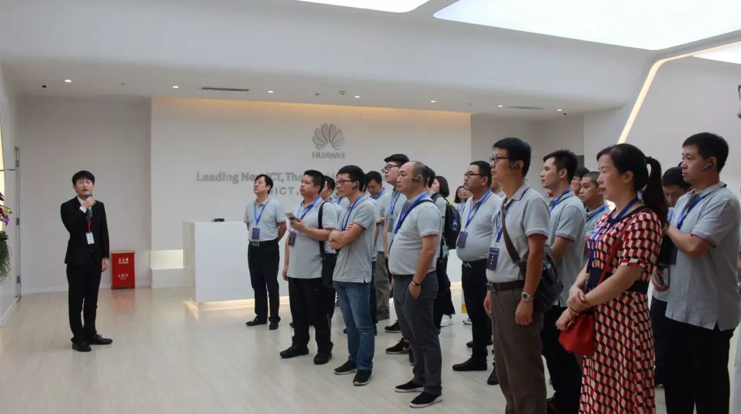 下午首先組織了合作夥伴前往華爲G區一樓展廳參觀行業解決方案展廳,之後(hòu)前往東莞松山湖參觀華爲自動物流中心。