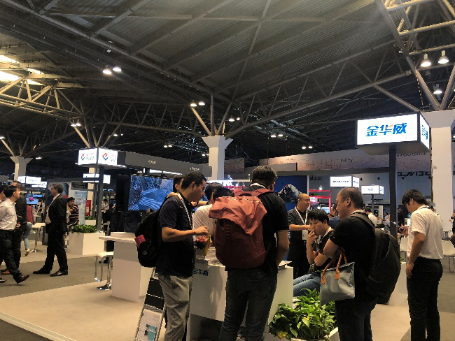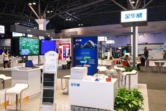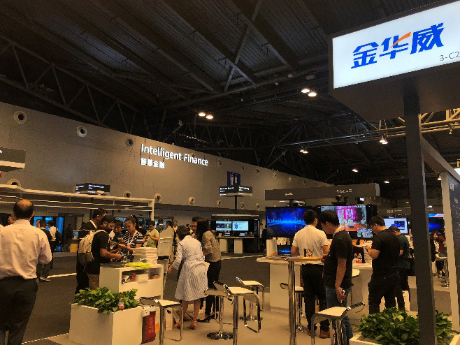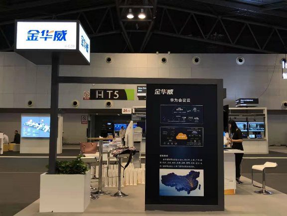 本次大會,金華威展台特别展示了華爲會議雲,吸引了衆多客戶現場互動體驗。