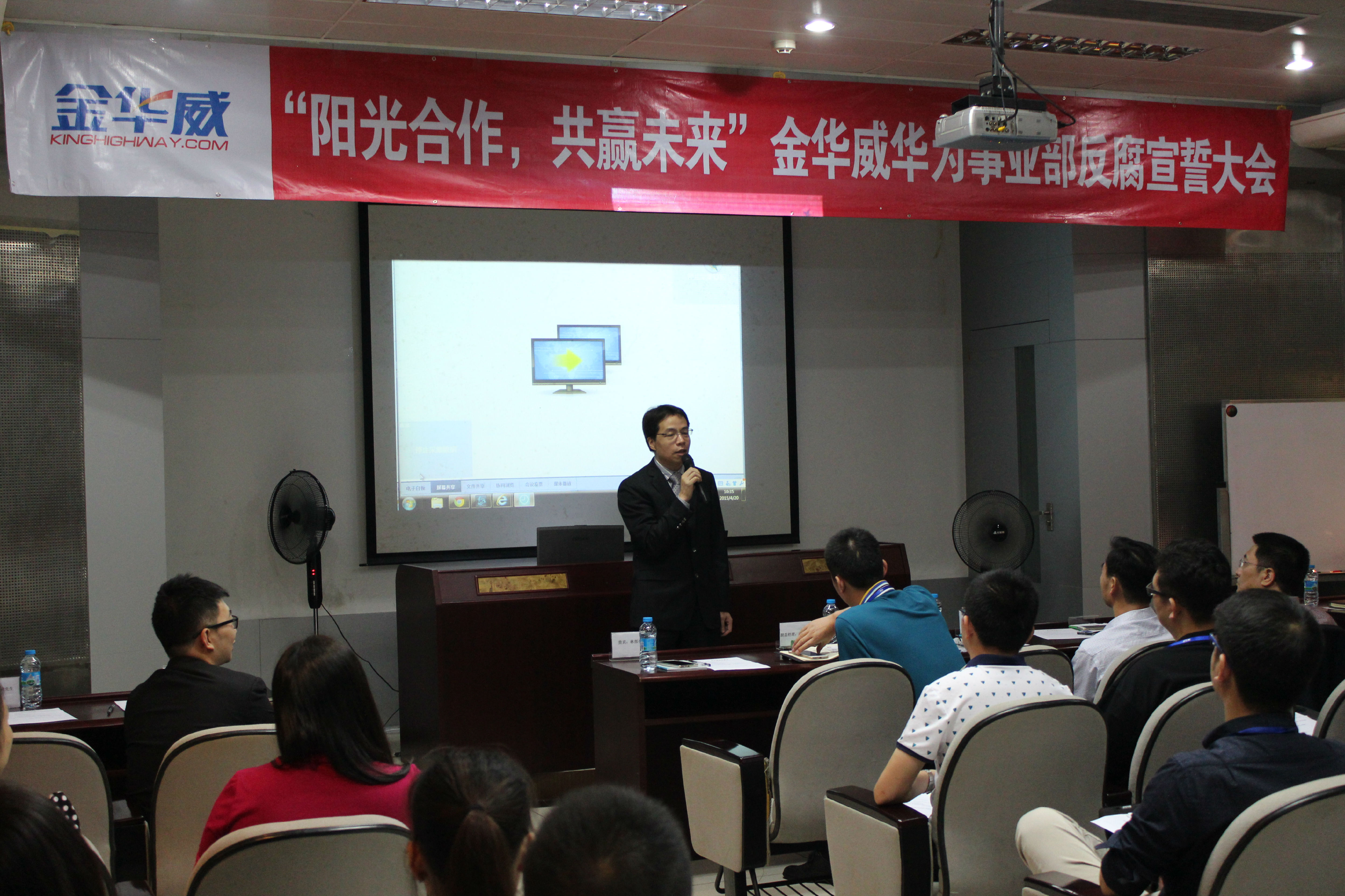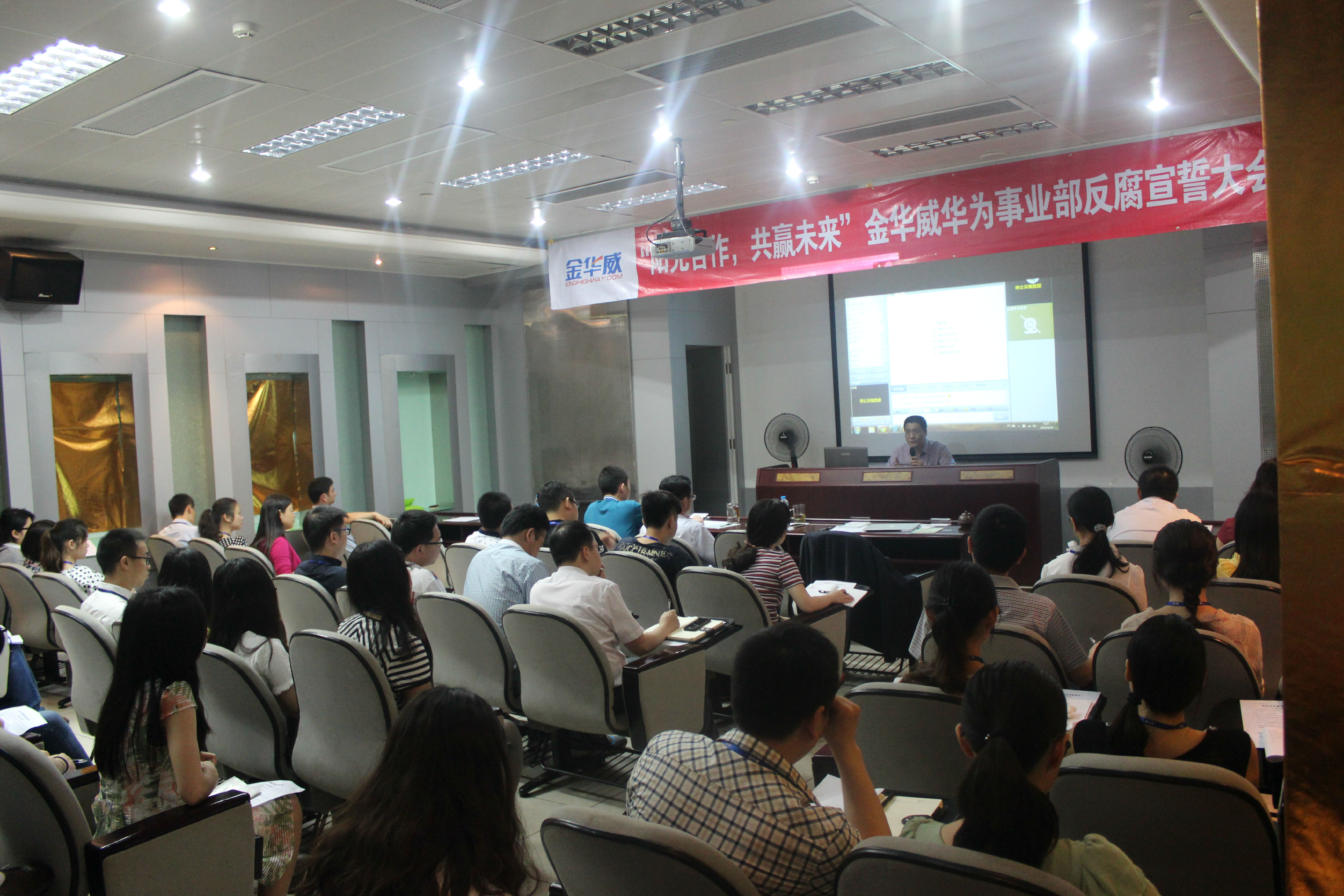 公司總經(jīng)理李俊雄做了主題爲“陽光合作,廉潔誠信”的宣誓動員,強調理解和認同華爲的企業文化,對(duì)于華爲事(shì)業部生存和發(fā)展的重要性。堅持“陽光合作、廉潔誠信”的商業行爲準則,不僅是華爲對(duì)所有合作夥伴的要求,更是我們自身利益的需要。在華爲業務高速發(fā)展的時期,爲了實現從通路型到能(néng)力型轉型,金華威公司的所有員工,必須堅決對(duì)任何形式的“商業賄賂”說不,堅決對(duì)任何形式的“虛假業績”說不,堅決對(duì)任何形式的“不正當競争”說不。如果我們每一個華爲業務的參與者都(dōu)堅持“陽光合作,廉潔誠信”,也就一定會分享到一個健康、透明和公正的市場秩序所帶來的長(cháng)期紅利。
